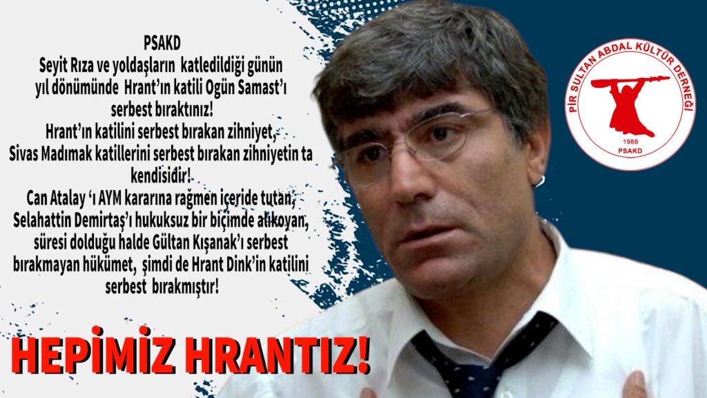 Pir Sultan Abdal Kültür Derneği (PSAKD) yazılı bir açıklama yaparak, Agos Gazetesi’nin Genel Yayın Yönetmeni Hrant Dink’i 19 Ocak 2007’de...