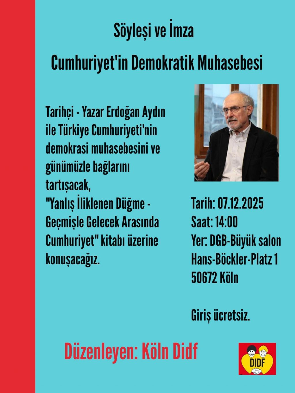 ⌈Haber Merkezi⌉ Türkiye’de demokrasi, tarih ve gelecek tartışmaları Almanya’nın Köln kentinde düzenlenecek özel bir söyleşi ve imza etkinliğiyle masaya yatırılacak....