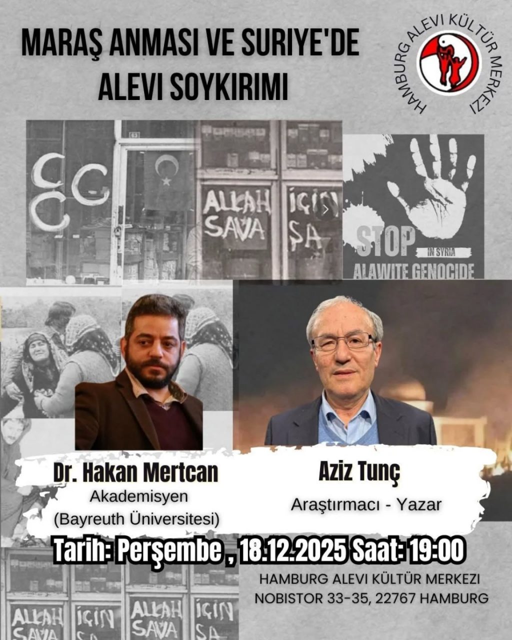 Hamburg Alevi Kültür Merkezi, Alevi toplumunun tarihsel ve güncel olarak karşı karşıya kaldığı katliamları gündeme taşıyan önemli bir söyleşi ve...