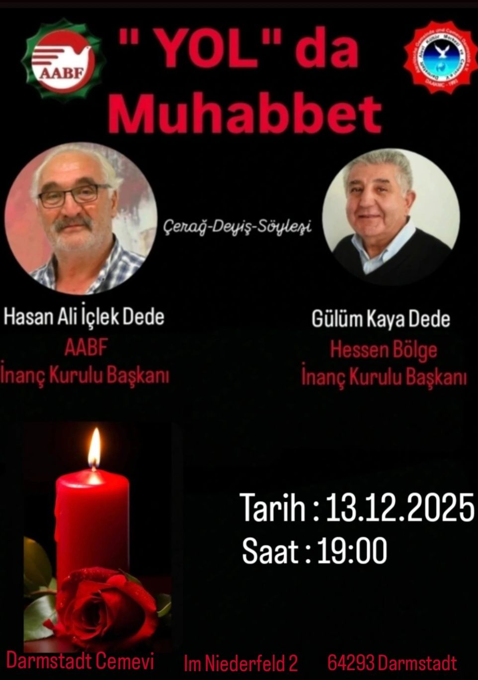 ⌈Haber Merkezi⌉ Darmstadt Alevi Kültür Merkezi (DAAKMC) İnanç Kolu tarafından hazırlanan “YOL’da MUHABBET” programı, 13 Aralık 2025 Cumartesi akşamı saat...