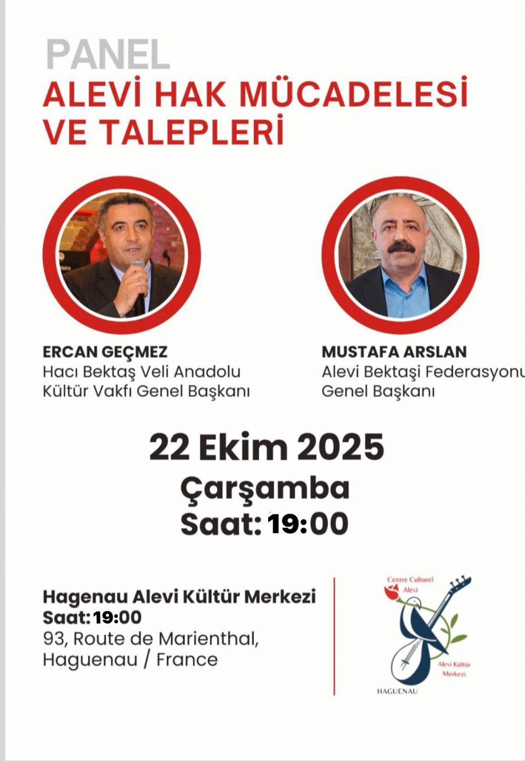 Haguenau - Haguenau kentinde faaliyet yürüten Haguenau Alevi Kültür Merkezi (AKM), 22 Ekim 2025 Çarşamba günü saat 19.00’da “Alevi Hak Mücadelesi...
