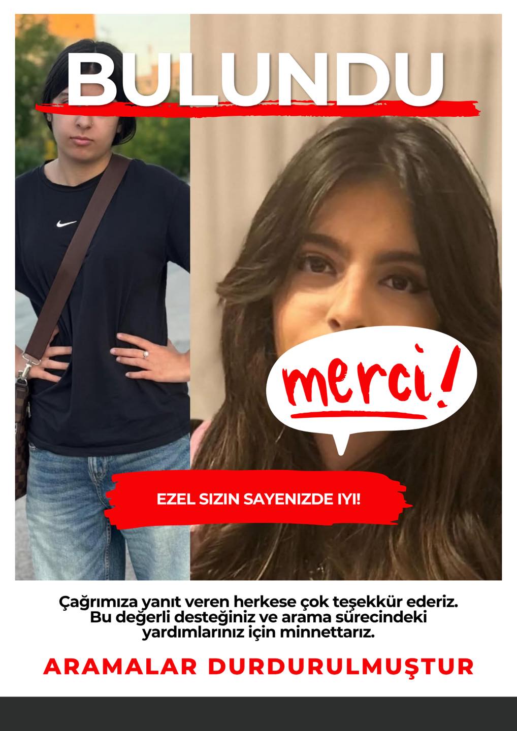 Bir Hafta Süren Endişeli Bekleyiş Sona Erdi Bir haftadır kayıp olarak aranan Ezel’in İtalya’da bulunduğu ve polis korumasına alındığı öğrenildi....