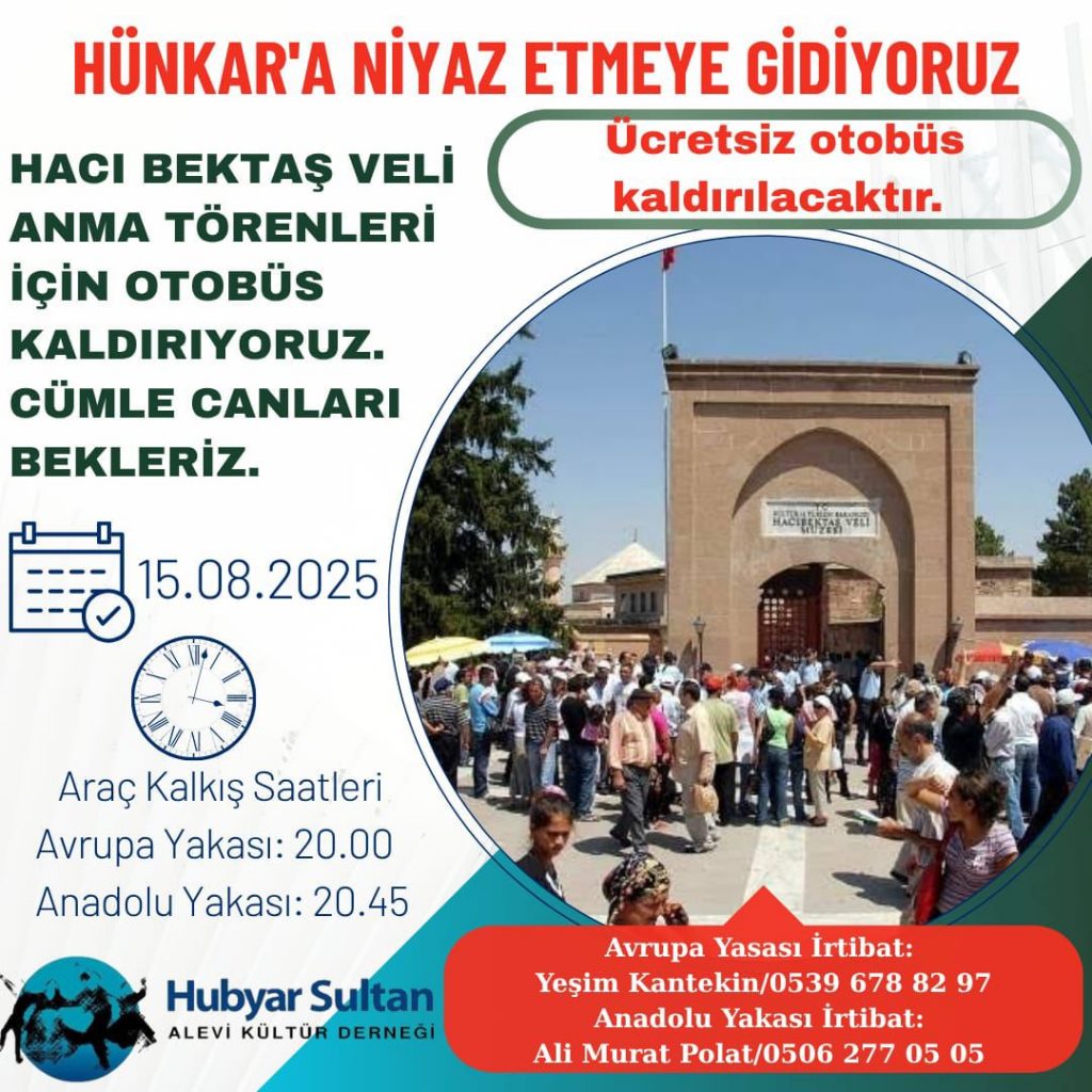 Hubyar Sultan Alevi Kültür Derneği, 16 Ağustos’ta düzenlenecek 62. Ulusal ve 38. Uluslararası Hacı Bektaş Veli Anma ve Kültür Sanat...