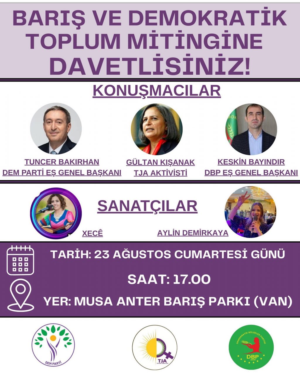 ⌈Haber Merkezi ⌉ Dem Parti Eş Genel Başkanı Tuncer Bakırhan, Van halkını demokrasi, barış ve özgürlük için yapılacak mitinge davet...
