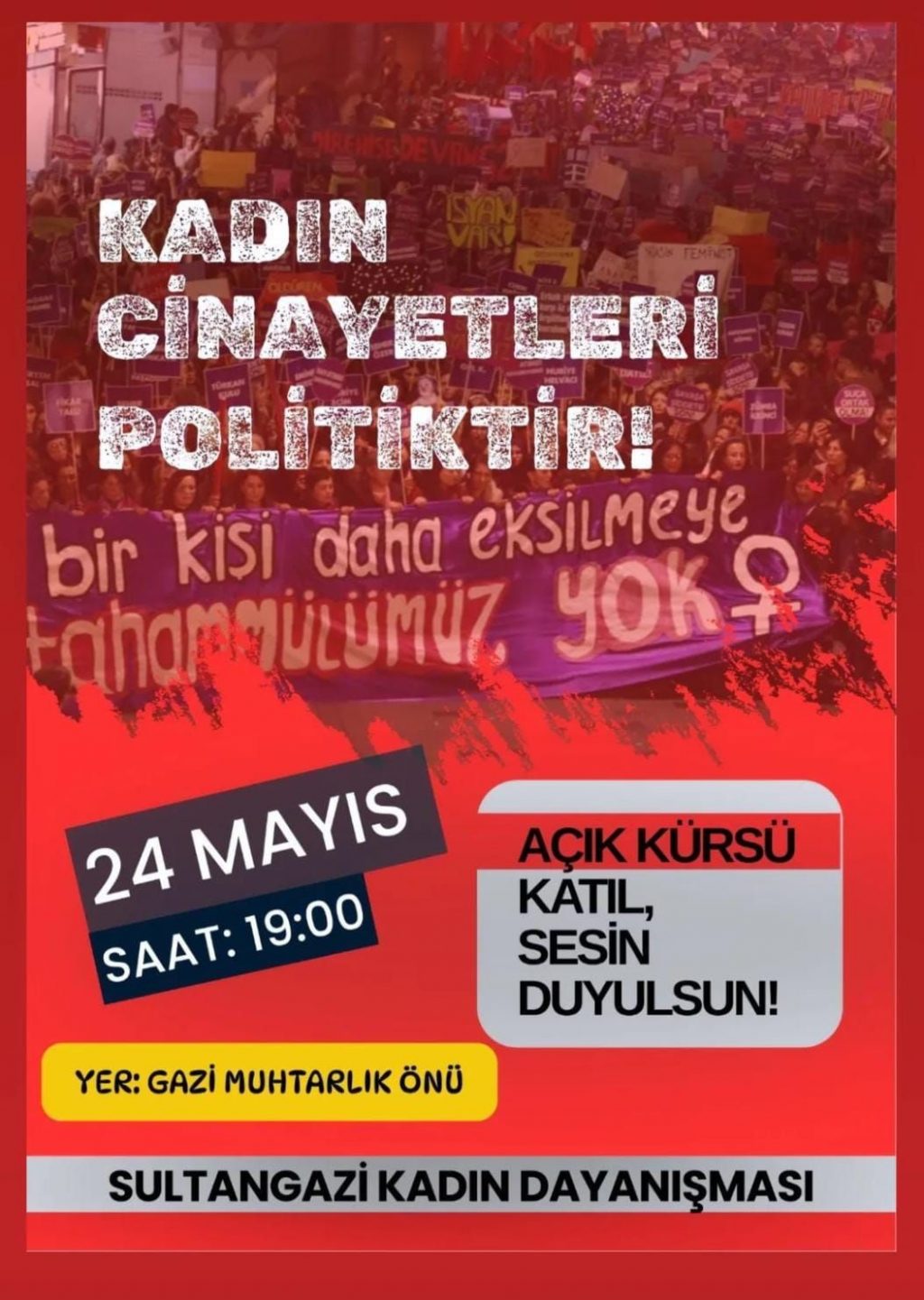 Haber Merkezi - Kadın cinayetlerine ve erkek şiddetine karşı toplumsal farkındalığı artırmak ve mücadeleyi büyütmek amacıyla, Sultangazi Kadın Dayanışması 24...