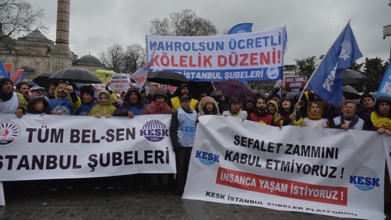 Yüzde 11.54'lük sefalet zammına karşı iş bırakan kamu emekçileri, Beyazıt Meydanında yan yana gelerek taleplerini sıraladı. Kamu emekçileri, yüzde 11.54'lük...