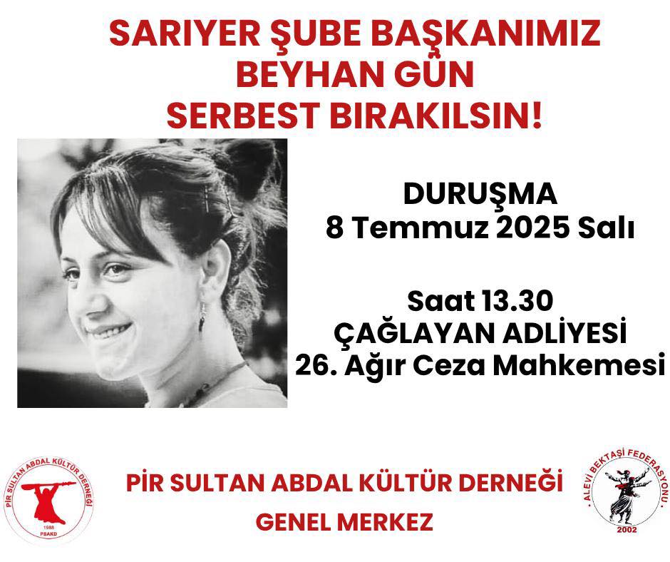 8 Temmuz’da Çağlayan Adliyesi’nde Duruşma Var Pir Sultan Abdal Kültür Derneği (PSAKD) Sarıyer Şube Başkanı Beyhan Gün’ün uzun süredir süren...