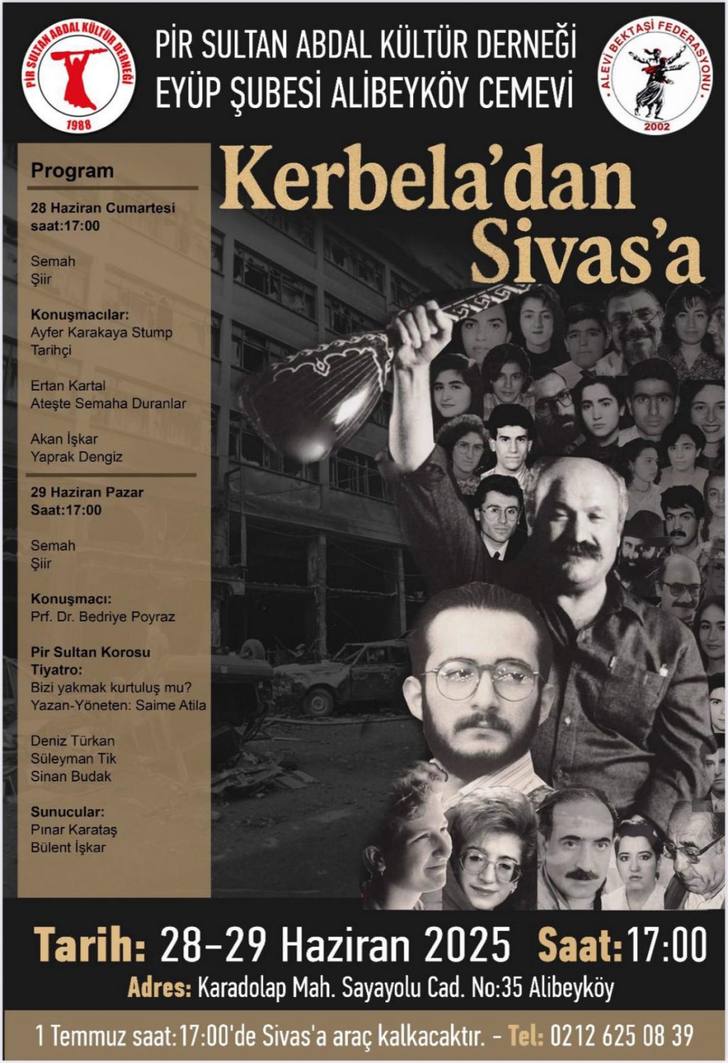 İstanbul / Alibeyköy – Pir Sultan Abdal Kültür Derneği (PSAKD) Eyüp Şubesi Alibeyköy Cemevi, Sivas Katliamı’nın 32. yılı dolayısıyla “Kerbela’dan...