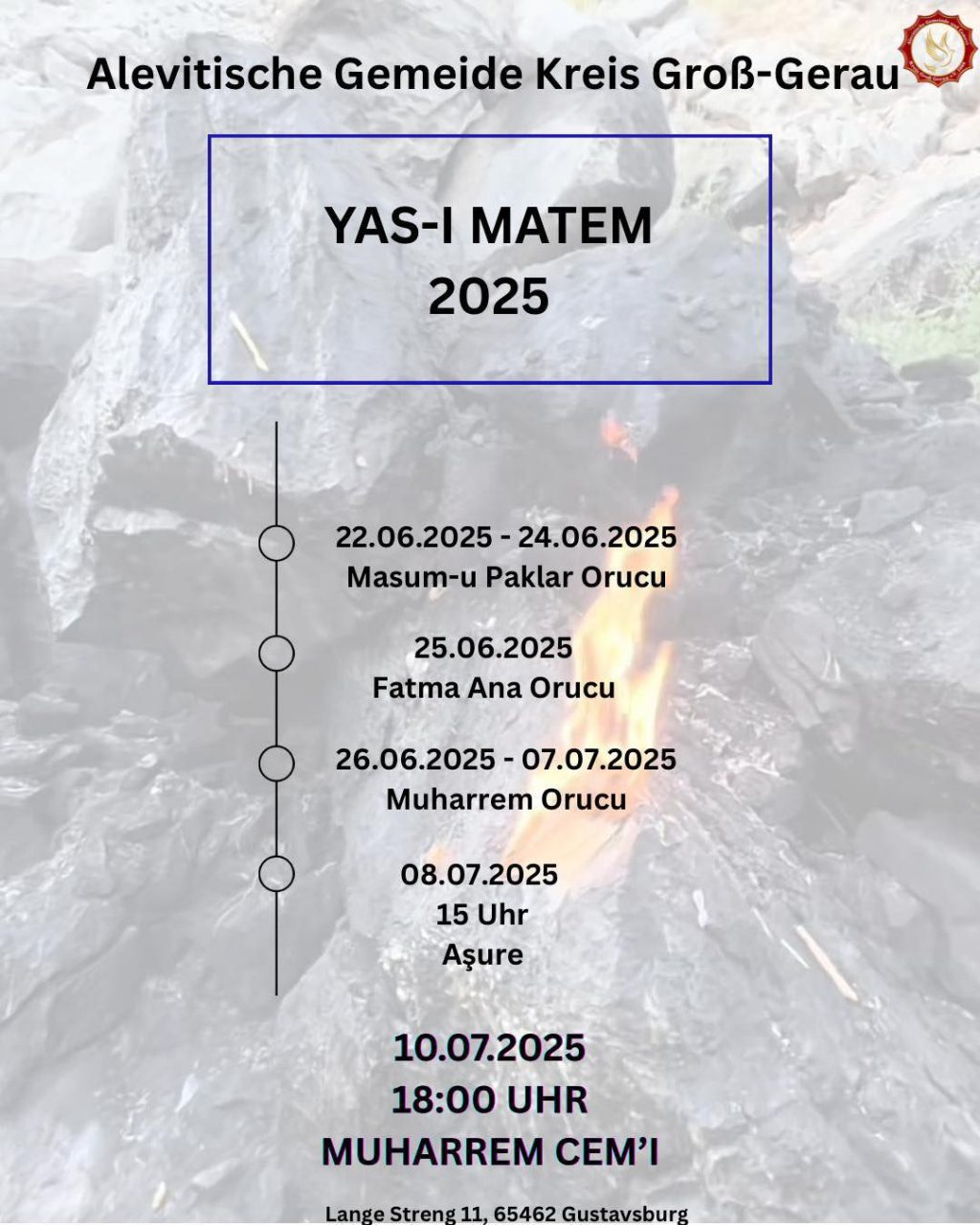 ⌈Haber Merkezi⌉ Kreis Groß-Gerau (Gustavsburg) Cemevi İnanç Kurulu, Muharrem Ayı vesilesiyle başlayacak olan Matem Orucu sürecine ilişkin programını duyurdu. Açıklamada,...