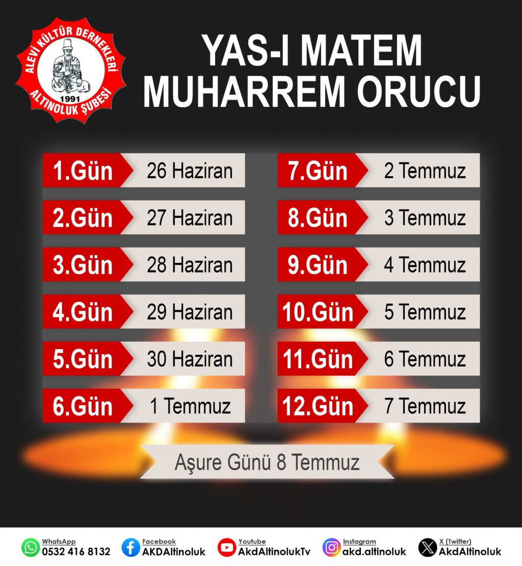 ⌈Haber Merkezi⌉ Alevi inancının en kutsal dönemlerinden biri olan Muharrem ayı, bu yıl 26 Haziran 2025 tarihinde başlıyor. Altınoluk Alevi...