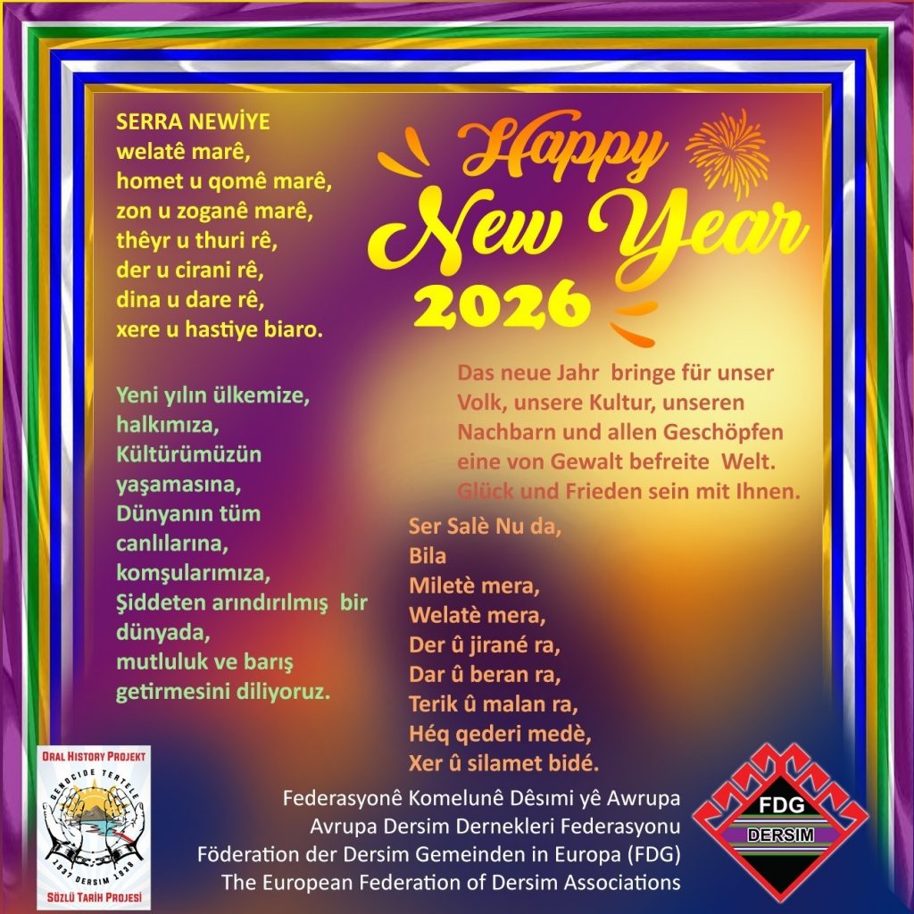 ⌈AHA⌉ Yeni yıl vesilesiyle birçok kurum ve kuruluş barış, eşitlik ve birlikte yaşam vurgusu içeren mesajlar yayımlarken, Avrupa Dersim Dernekleri...