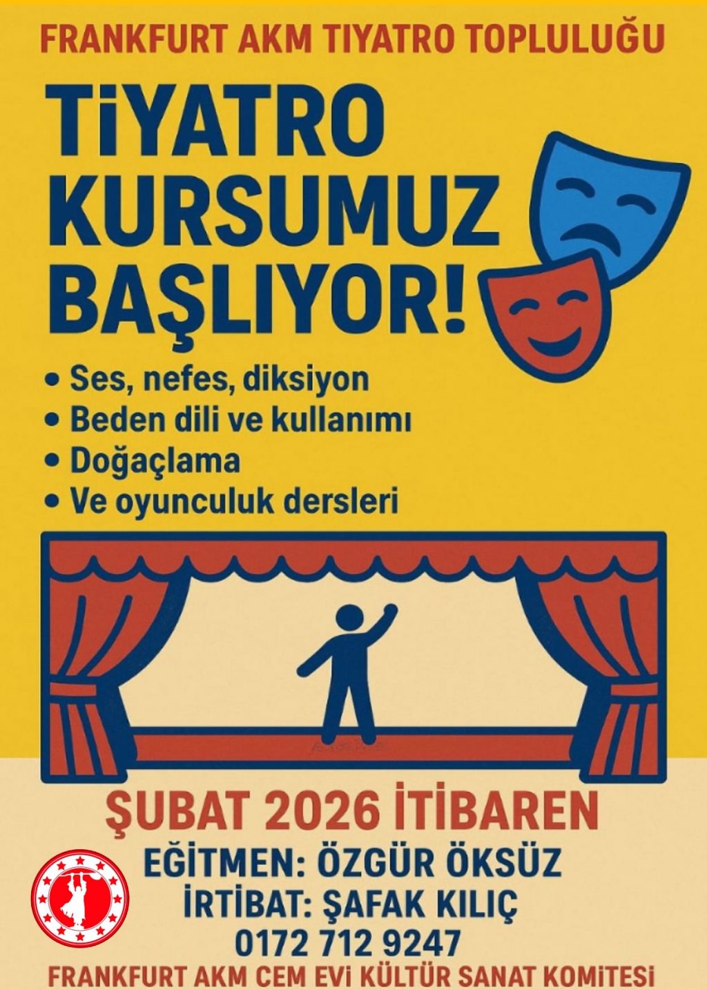 Frankfurt AKM Cemevi Kültür ve Sanat Komitesi, yürüttüğü kültür-sanat faaliyetlerine bir yenisini daha ekledi. Büyük emeklerle hazırlanan tiyatro eğitimi, Şubat...