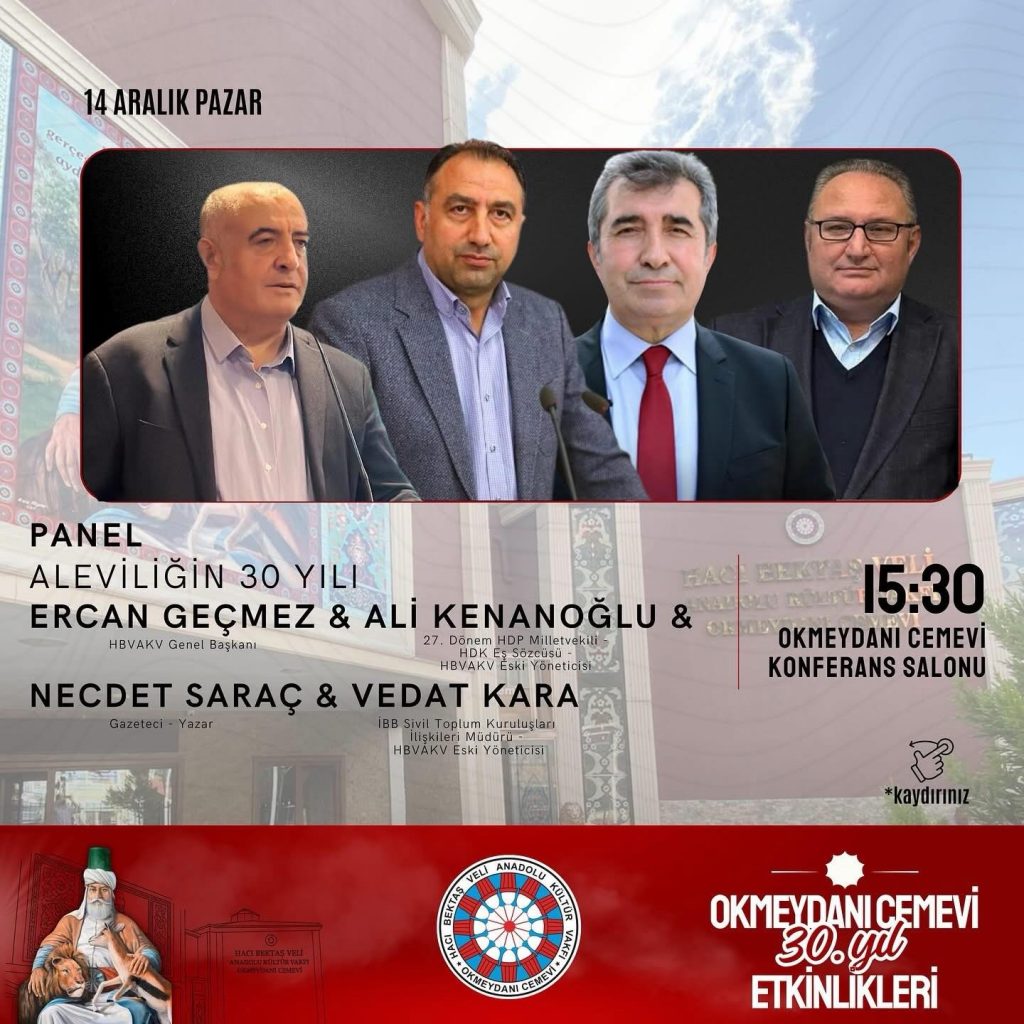 ⌈AHA -Okmeydanı⌉ Okmeydanı Cemevi’nin 30. yılı kapsamında düzenlenen etkinlikler, Alevi örgütlülüğü, inanç mücadelesi ve toplumsal değişim süreçlerinin masaya yatırıldığı kapsamlı...