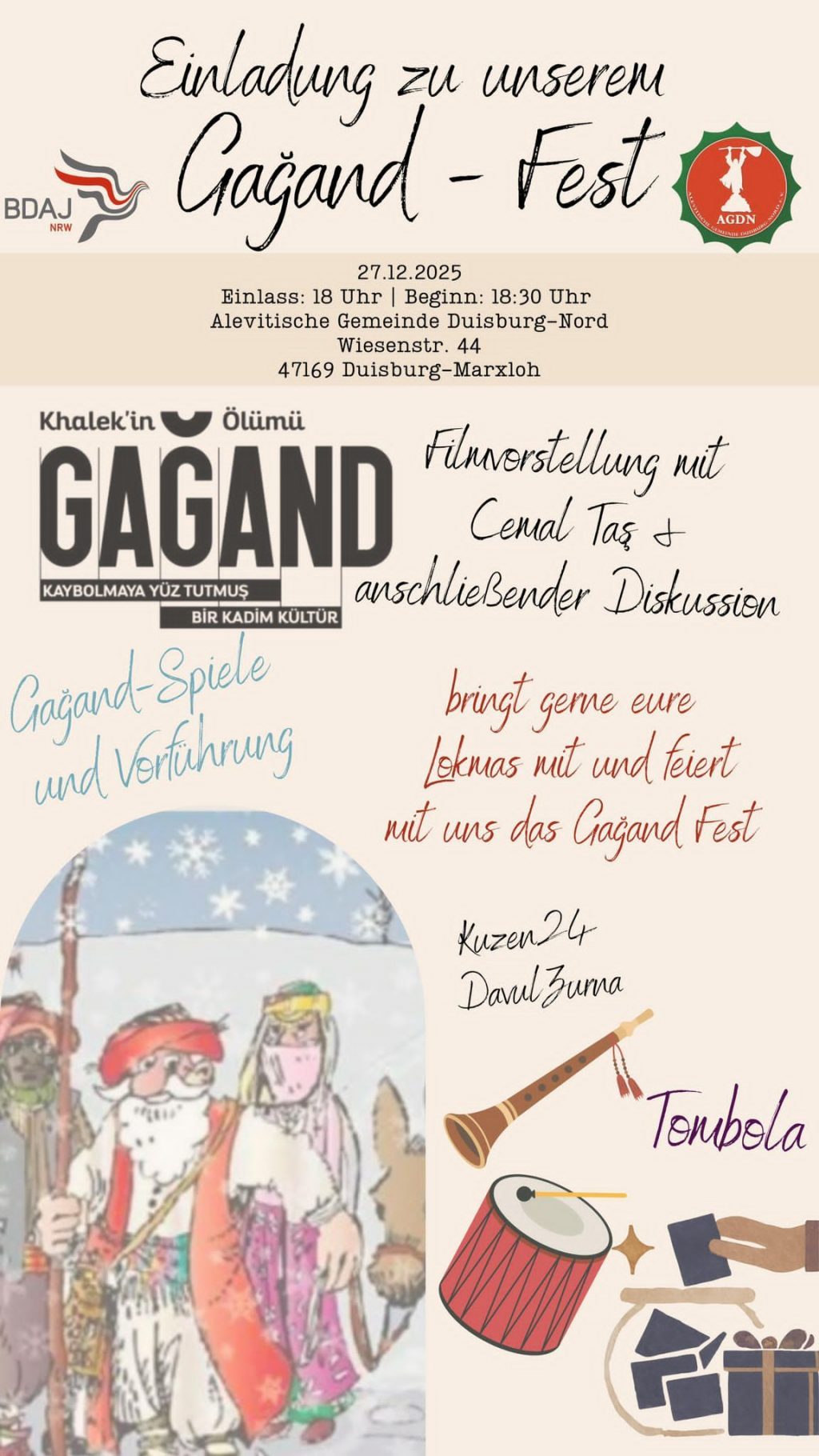 ⌈Haber Merkezi⌉ Alevi kültürünün kadim geleneklerinden biri olan Gağan, Duisburg’ta düzenlenecek özel bir etkinlikle kutlanacak. BDAJ NRW ile Alevitische Gemeinde...