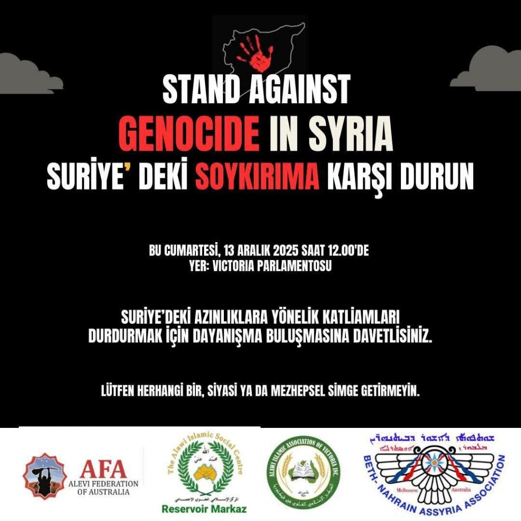 ⌈Haber Merkezi⌉ Suriye’de azınlık topluluklarına yönelik devam eden katliamlar ve insan hakları ihlallerine karşı Avustralya’nın Melbourne kentinde güçlü bir dayanışma...