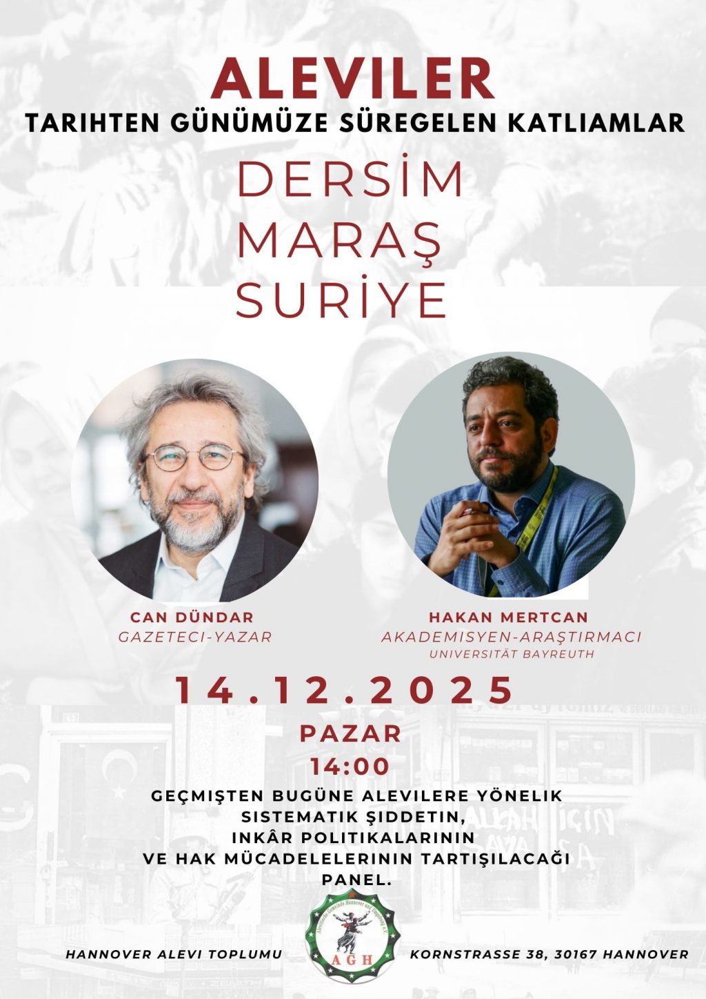 ⌈Şener Demirbağ ⌉ Hannover Alevi Toplumu, Alevilere yönelik tarihsel ve güncel katliamların ele alınacağı kapsamlı bir panel düzenliyor. “Tarihten Günümüze...
