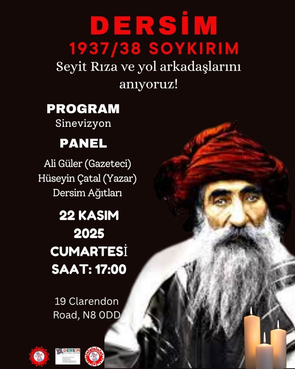 ⌈Haber Merkezi⌉ Dersim 1937/38 Soykırımı’nda katledilen Seyit Rıza ve yol arkadaşları, İngiltere Alevi Kültür Merkezi ve Cemevi tarafından düzenlenen programla...