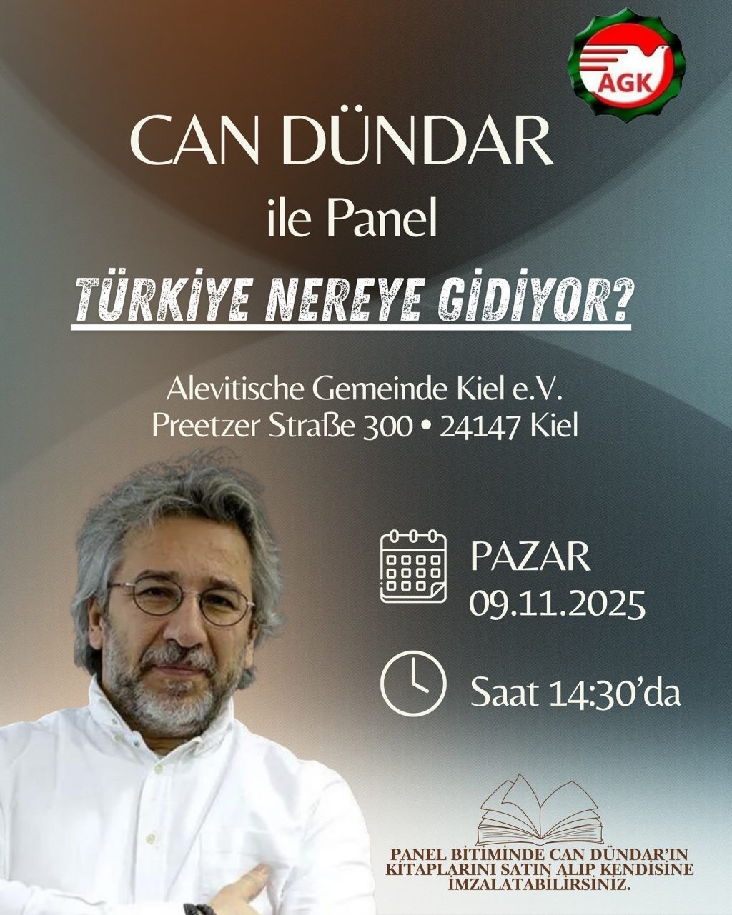 Kiel Alevi Toplumu, gazeteci ve yazar Can Dündar’ı konuk ederek “Türkiye Nereye Gidiyor?” başlıklı bir panel düzenliyor. Etkinlik, 9 Kasım...