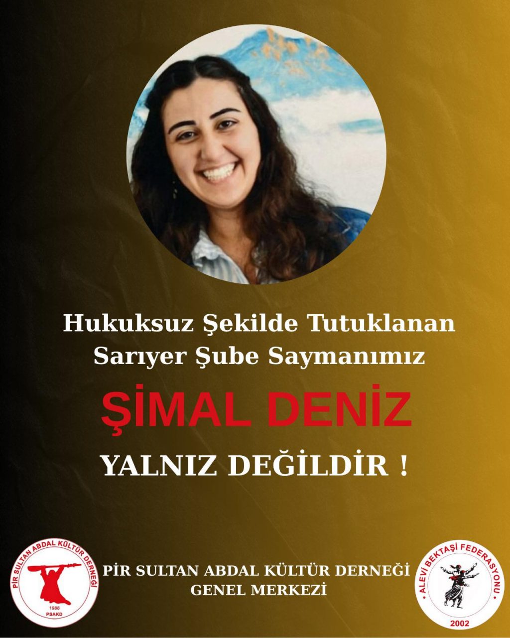 ⌈Haber Merkezi⌉ Pir Sultan Abdal Kültür Derneği (PSAKD) Genel Merkezi, Sarıyer Şube Saymanı Şimal Deniz’in hiçbir hukuki gerekçe olmadan tutuklanmasına...