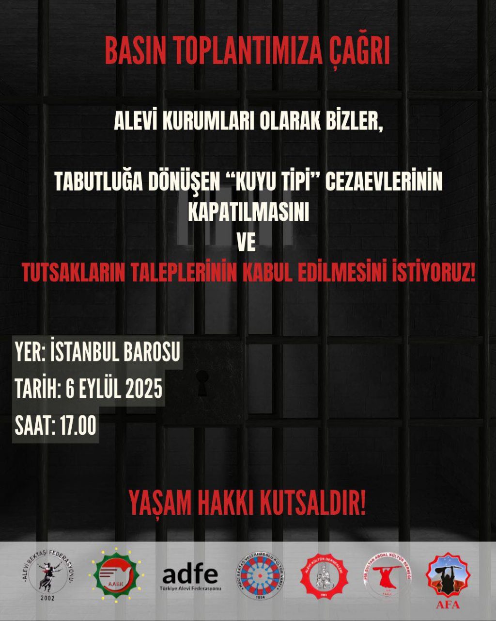 Basın Toplantısına ÇağrıAlevi kurumları, “tabutluğa dönüşen kuyu tipi cezaevlerinin” kapatılması ve tutsakların insani taleplerinin kabul edilmesi için bir basın toplantısı...
