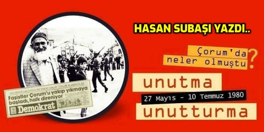 Hasan Subaşı Türkiye'nin yakın tarihinde derin izler bırakan katliamlardan biri olan Çorum Katliamı, 28 Mayıs - 4 Temmuz 1980 tarihleri...