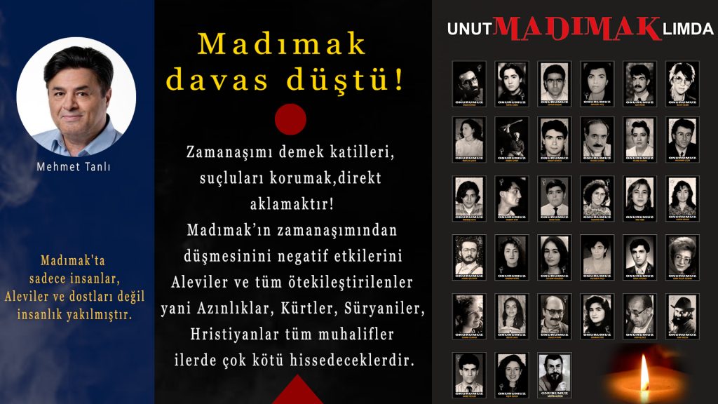 ⌈Turan Eser⌉ Dün Ankara Adliyesi 1’nci Ağır Ceza Mahkemesi’nde, Madımak katliamı sanığı üç firarinin yargılandığı Sivas Katliamı davasında, zamanaşımı gerekçe...