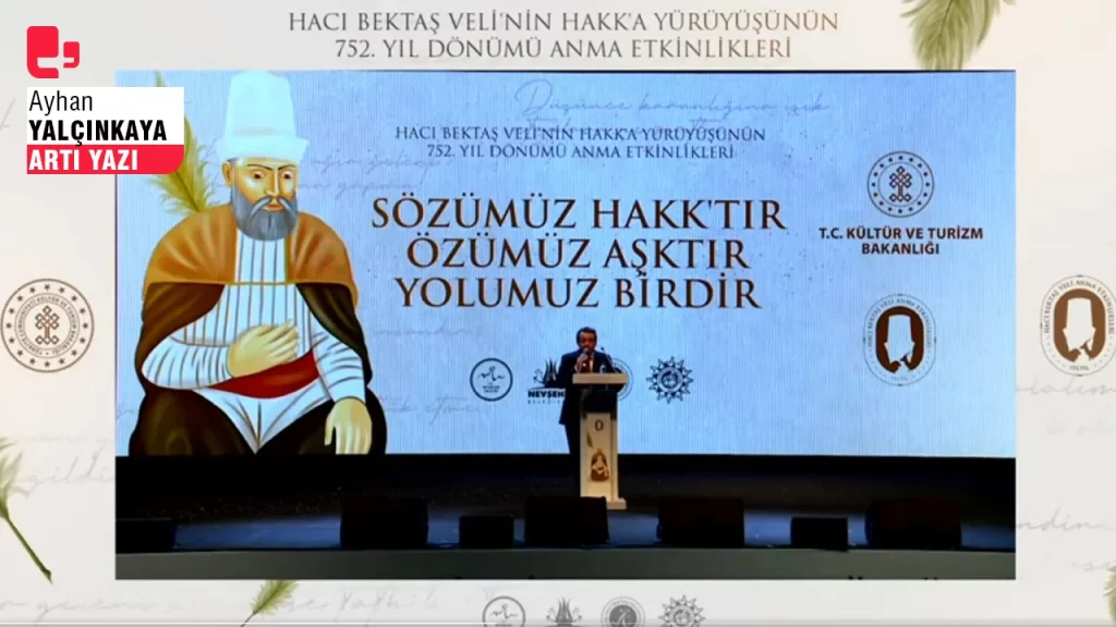 Bakanlık, kontrolünde gerçekleşen Hacı Bektaş Veli etkinliğine ilişkin yayınladığı videoda simge operasyonu yapmış. Hacı Bektaş'ın temsili görseli bir meczup, bir...
