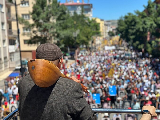 Acıyı bal eyledik, sabah güneşini umut, dertleri derman eyledik, düşmanı dost, nefreti sevgi, karanlığı aydınlık eyledik, bir tek zalime...