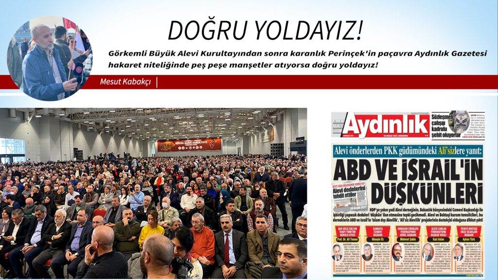 -Mesut Kabakçı - Görkemli Büyük Alevi Kurultayından sonra karanlık Perinçek'in paçavra Aydınlık Gazetesi hakaret niteliğinde peş peşe manşetler atıyorsa doğru...