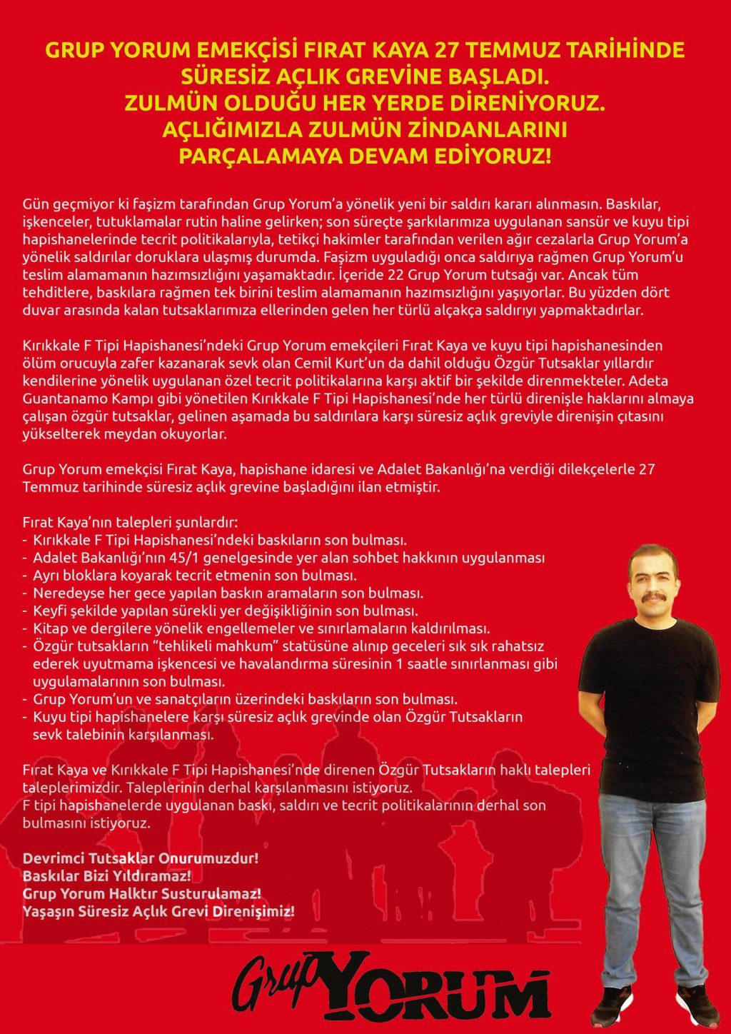 “Zulmün Olduğu Her Yerde Direniyoruz, Açlığımızla Zindan Duvarlarını Parçalıyoruz” ⌈Haber Merkezi⌉ Grup Yorum emekçisi Fırat Kaya, 27 Temmuz 2025 tarihinde...
