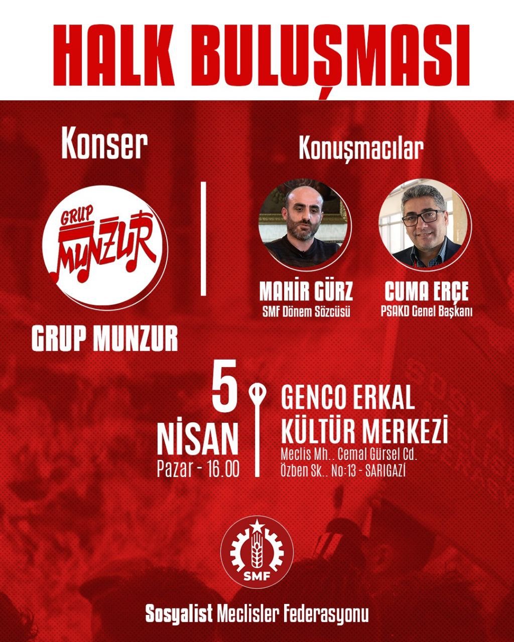 ⌈AHA⌉ Sosyalist Meclisler Federasyonu (SMF), İstanbul’un Sarıgazi semtinde geniş katılımlı bir halk buluşması düzenlemeye hazırlanıyor. 5 Nisan Pazar günü gerçekleştirilecek...