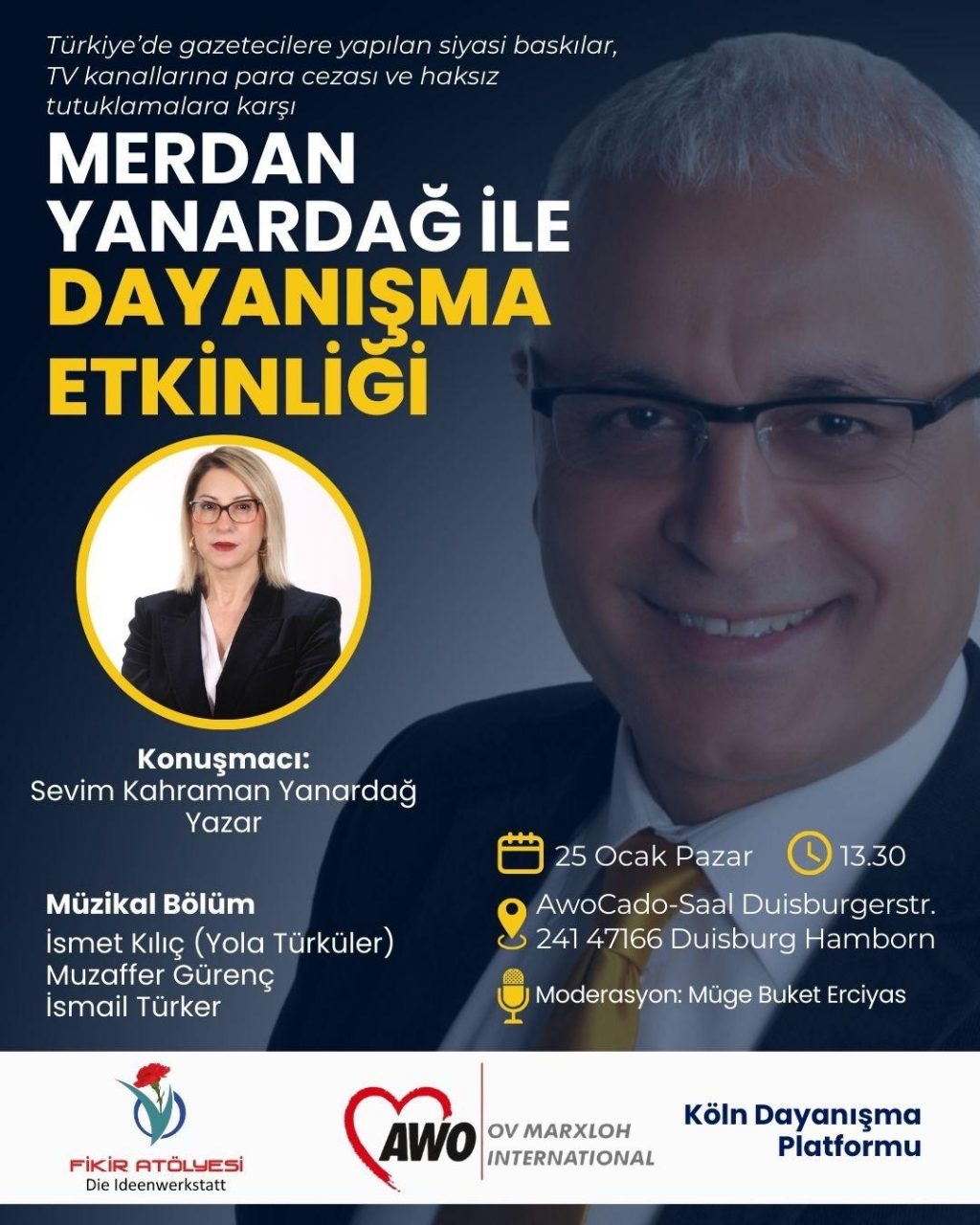 ⌈Mahmet Tanlı⌉ Duisburg şehrinde Fikir Atölyesi Derneği, Köln Dayanışma Platformu ve AWO Enternasyonal Merdan Yanardağ ile bir dayanışma etkinliği düzenledi....