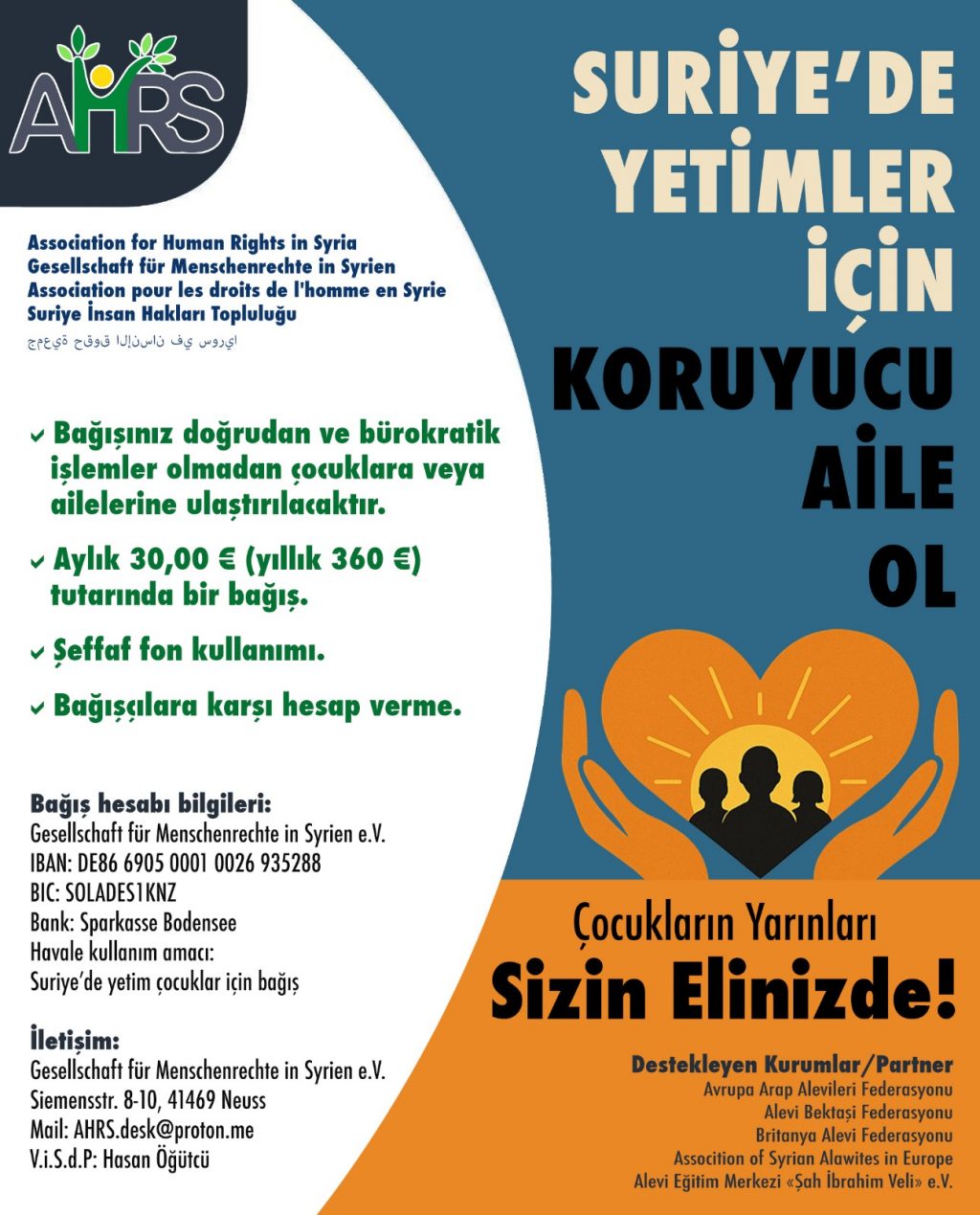 ⌈AHA⌉ Association for Human Rights in Syria (AHRS – Suriye İnsan Hakları Topluluğu), Suriye’de savaş, yoksulluk ve şiddet nedeniyle yetim...