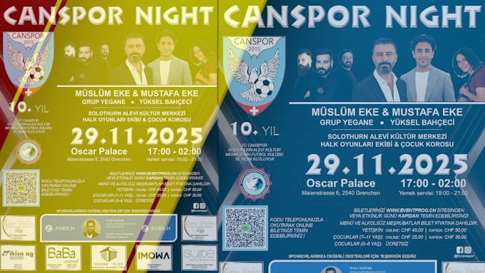 ⌈Haber Merkezi⌉ FC Canspor, Solothurn Alevi Kültür Merkezi’nin bünyesinde faaliyet gösteren futbol kulübünün geleneksel dayanışma ve kutlama gecesi olan “Canspor Night”,...