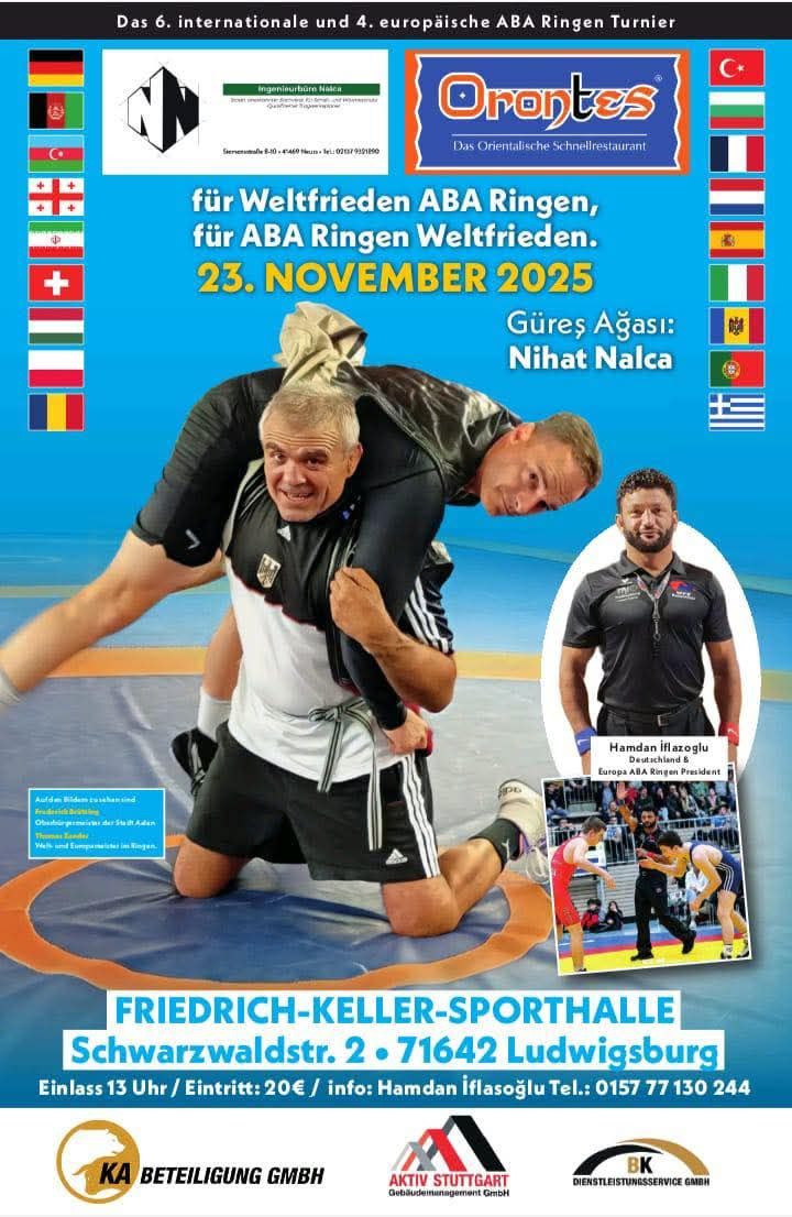 ⌈Haber Merkezi⌉ Almanya’nın Ludwigsburg kentinde gerçekleştirilecek 6. Uluslararası ve 4. Avrupa ABA Güreş Turnuvası, 23 Kasım 2025 tarihinde Friedrich-Keller-Sporthalle’de düzenlenecek....